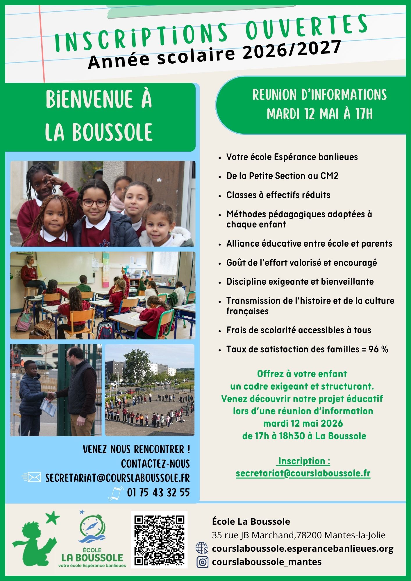 Effectifs réduits, pédagogie adaptée, apprentissage de la citoyenneté : inscrivez-votre enfant au cours La Boussole à Mantes-la-Jolie !